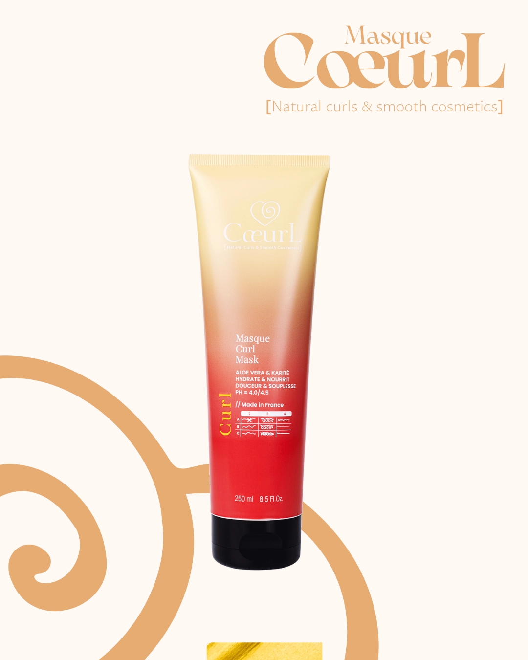 1 - Le coeurl masque avant le shampooing pour bien nourrir le cheveu et le préparer au shampooing texturé. Il aura un rôle majeur pour embellir la chevelure frisée.